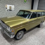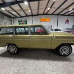 This 1971 Jeep Wagoneer is a classic early full-size luxury 4×4 wagon that helped define the modern SUV segment long before the term became common. Finished in green with chrome bumpers, trim, and door handles, it retains the upright, purposeful styling that made the SJ-platform Wagoneer so distinctive. Power comes from a 350ci Dauntless V8 paired with a 3-speed automatic transmission and full-time 4WD, delivering strong low-end torque and dependable all-weather capability. Inside, the black vinyl interior offers simple and durable period-correct utility, while the overall truck presents as an honest driver-quality project with solid character, vintage appeal, and strong potential for restoration or enjoyable classic use.