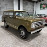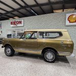 This 1972 International Harvester Scout II is finished in Terra Bronze Metallic with a black soft top and bronze accents, giving it the rugged and unmistakable look that made the Scout II a 1970s off-road icon. Classic details such as round headlights, a chrome grille, full-length roof rack, side steps, rear-mounted spare tire, and 15-inch steel wheels wrapped in 31-inch all-terrain tires add to its authentic vintage SUV character. Power comes from a 345ci V8 paired with a 3-speed automatic transmission and part-time four-wheel drive with manual locking hubs, delivering dependable torque and versatile performance on or off the road. Inside, the beige interior features front bucket seats, a fold-down rear bench, center console, woodgrain dash accents, and an aftermarket AM/FM stereo. A solid and well-kept driver-quality example, this Scout II offers honest character, proven durability, and growing collector appeal for enthusiasts who want a classic American 4×4.