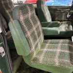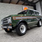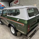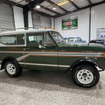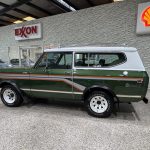 This 1980 International Harvester Scout II Traveltop Midas Edition is a rare final-year example that combines classic off-road capability with unique period luxury. Finished in green with gray and orange side graphics and a white removable Traveltop hardtop, it features roof clearance lights, a roof rack, orange-tinted fog lights, chrome bumpers, a roll bar, receiver hitch, black wheel arch flares, and 15-inch white eight-spoke wheels wrapped in Goodyear Wrangler tires. Power comes from the factory 3.2L turbodiesel inline-six paired with a 4-speed manual transmission and part-time four-wheel drive, offering strong torque and dependable utility for both highway cruising and trail use. Inside, the green plaid cloth Midas-conversion interior includes swiveling front captain’s chairs, rear bucket seats, matching trim and carpeting, air conditioning, an AM/FM stereo, a Digitar digital clock, and auxiliary gauges. A rare and highly distinctive driver-quality vintage 4×4, this Scout II stands out for its unusual factory-based Midas conversion, turbodiesel power, and unmistakable final-era International Harvester character.
