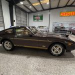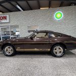 This 1983 Datsun 280ZX Turbo is finished in Dark Brown with gold accent stripes and presents a highly desirable final-year Datsun-badged Z-car with classic early-1980s grand touring style. Exterior features include a functional NACA hood duct, factory front spoiler, rear window wiper, power antenna, removable glass T-top roof panels, and 15-inch ZX Turbo alloy wheels wrapped in BFGoodrich Radial T/A tires. Power comes from the turbocharged 2.8L inline-six paired with a rare 5-speed manual transmission, delivering strong boost response, engaging rear-wheel-drive performance, and a refined yet sporty driving experience. Inside, the beige interior features bucket seats, power windows and locks, rear window defroster, factory stereo, digital instrumentation, and auxiliary gauges for boost, oil temperature, and oil pressure. With clean history, tasteful cosmetic refinishing, and strong collector appeal, this 280ZX Turbo is an excellent blend of 1980s Japanese performance, open-air T-top fun, and everyday usability.