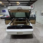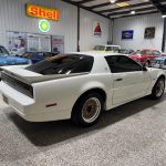 This 1987 Pontiac Firebird Trans Am GTA is finished in white with Camel cloth upholstery and showcases the unmistakable styling of Pontiac’s third-generation performance coupe. Features such as pop-up headlights, fog lights, hood vents, rear spoiler, power-adjustable side mirrors, dual exhaust outlets, and 16-inch gold-finished diamond-spoke aluminum wheels give it bold period-correct presence. Powered by a tuned-port injected 5.7L V8 paired with a 4-speed automatic transmission, it delivers strong performance along with the added benefit of the WS6 Special Performance Package, Y99 Rally Tuned Suspension, four-wheel disc brakes, and limited-slip differential. Inside, the well-preserved Camel cloth interior includes front bucket seats, individual rear seats, full instrumentation, a tilting leather-wrapped steering column, air conditioning, cruise control, power windows and locks, rear window defogger, and a Delco cassette stereo with graphic equalizer. A low-mileage survivor with window sticker, owner’s manual, clean Carfax, and clean title, this Firebird Trans Am GTA is a desirable driver-quality example of 1980s Pontiac performance with authentic character and strong collectible appeal.