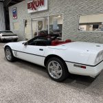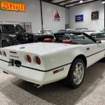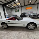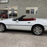 This 1990 Chevrolet Corvette Convertible (C4) is an exceptionally low-mileage survivor finished in white with a matching white power soft top and accompanied by a removable body-color hardtop, giving it one of the most desirable and timeless color combinations of the C4 era. Classic Corvette styling cues include pop-up headlights, integrated fog lights, quad taillights, polished quad exhaust outlets, and 17-inch alloy wheels, while the accident-free history and long-term original ownership further enhance its appeal. Power comes from a 5.7L L98 V8 paired with a 4-speed automatic transmission and limited-slip differential, delivering smooth, responsive performance with excellent mid-range power. Equipped with the Selective Ride and Handling Package, four-wheel disc brakes with ABS, red leather power sport seats, automatic climate control, cruise control, trip computer, and Bose audio, this Corvette offers a compelling blend of comfort, performance, open-air enjoyment, and rising collector value.